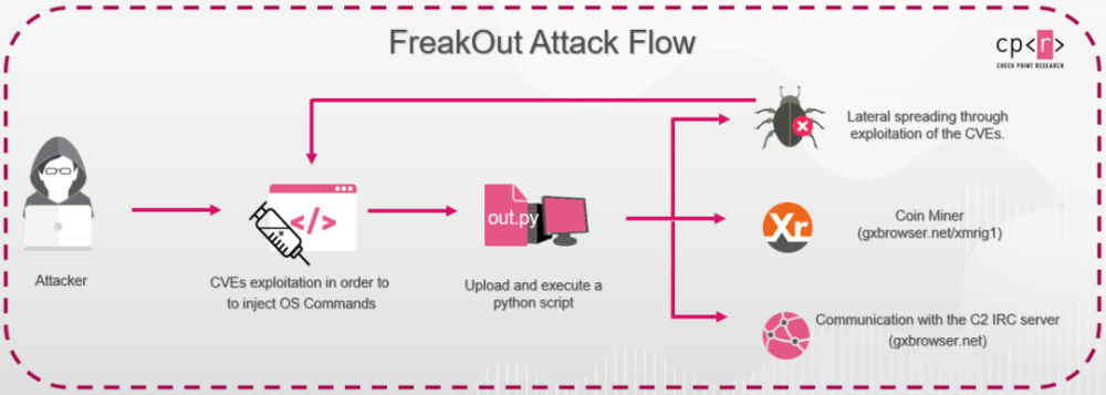 完整技术分析报告参见:https://research.checkpoint.com/2021/freakout-leveraging-newest-vulnerabilities-for-creating-a-botnet/