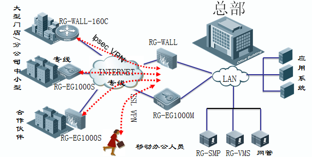 Ø 全面提供合乎客户需求的VPN解决方案,支持层面在专用的VPN设备、3G路由器、及内置流量控制EG 产品(提供多种VPN的接入方式,Ipsec、SSL VPN、多点接入VPN)