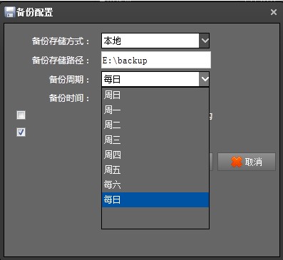 3.可以定义自动备份的时间(整点)以及周期(每日或者每周几)