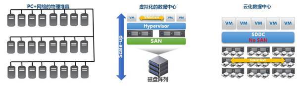随着企业业务的不断发展,越来越多的业务需要互联网化,基于虚拟化技术的数据中心也不能完全适应业务发展带来的变化。因为基于虚拟化技术的数据中心仅仅解决了服务器资源利用率和高可用性的问题,但是计算与存储分离,只能通过专用的SAN/NAS的存储访问方式。VMware服务器虚拟化的Vmotion/HA等高可用特性极度依赖于集中存储,如果没有集中存储设备,这些特性都无法实现。所以基于虚拟化的数据中心又带来了新的存储问题: