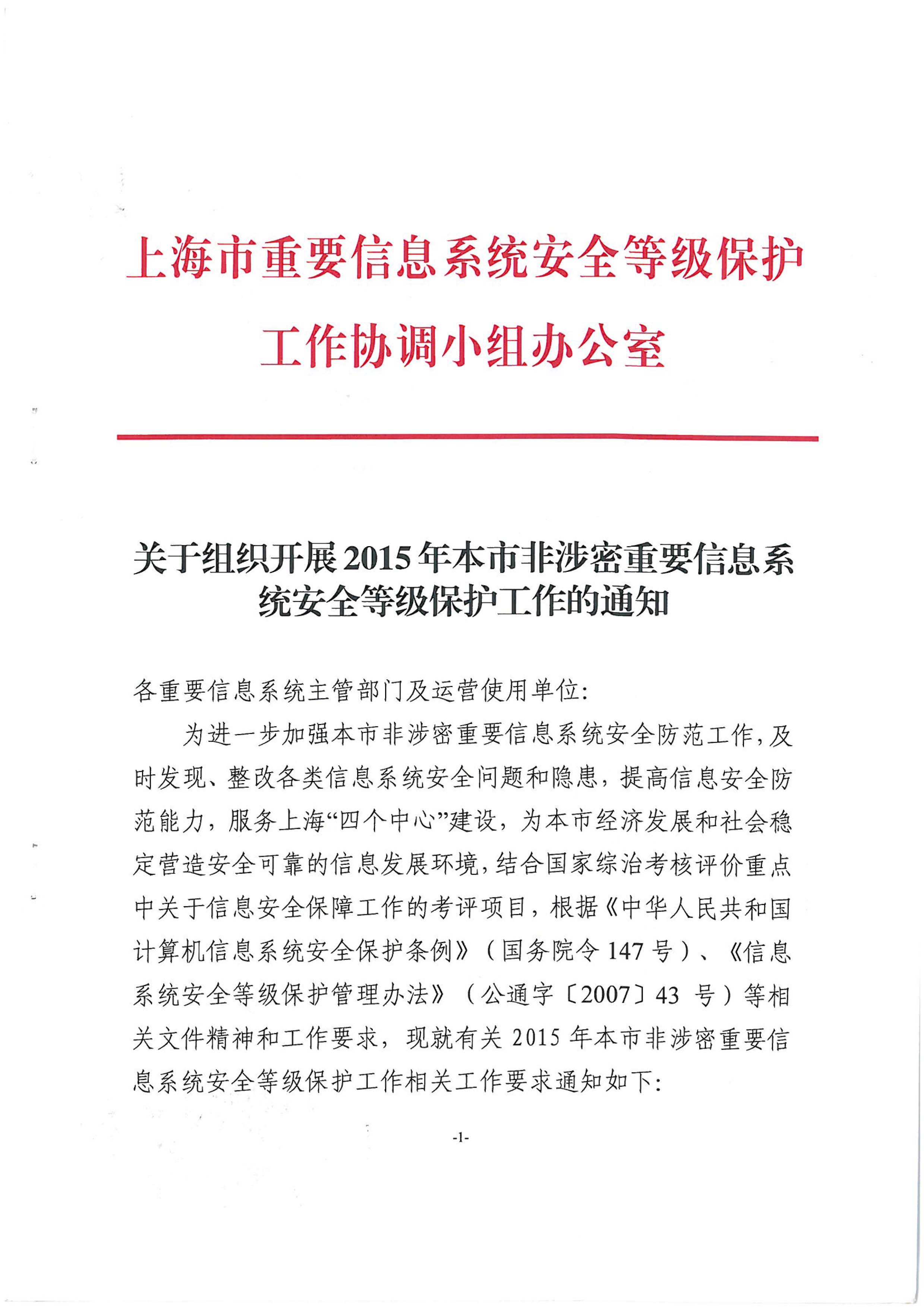 关于组织展开2015年本事非涉密重要信息系统安全等级保护工作的通知