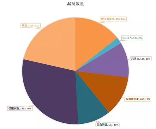 按照漏洞类型来进行分类,造成信息泄露和缓冲区溢出以及权限问题的漏洞占了较大比例,而这些影响可能引起更多的信息安全危害。对比前三个半年,这三类漏洞的占比逐年升高。