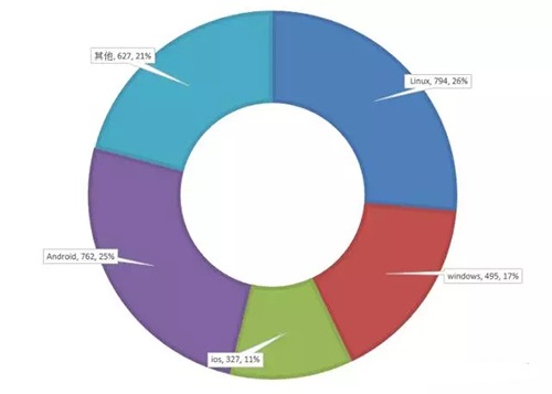其中,Linux的漏洞有794个,windows的漏洞有495个;而移动端方面安卓平台的系统漏洞有762个,与之相比宣称很安全的IOS也曝出327个漏洞,占所有系统漏洞的12%。系统级的漏洞占据总漏洞的52%,而Linux与windows的漏洞占据系统漏洞的大半江山。