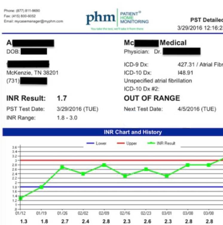 Gizmodo方面审查的泄露记录之一显示,一名居住在田纳西州的患者被诊断患有心房纤维性颤动,属于一种严重疾病,具体症状包括心跳异常(心律不齐),已知可能导致心脏衰竭、中风以及多种其它严重健康风险。记录显示,该患者一直在接受一系列家庭内血液检测,旨在及时向医生报告血块以及由血液稀释药物所引发的意外内出血等问题。
