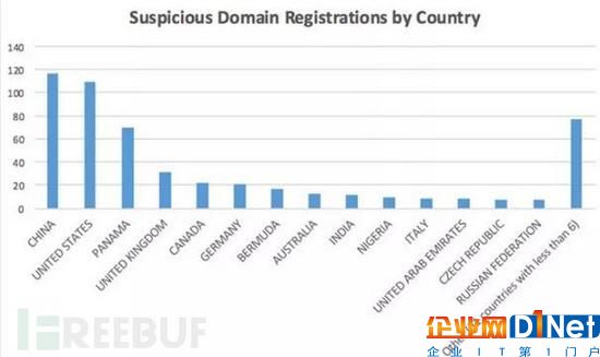 攻击者确定目标之后,通常来说都会进行初步侦查,收集域名信息,伪造邮件或者上网搜索是否已出现其雇员资料。利用虚假域名可以诱导用户下载恶意软件,甚至有攻击者直接伪造网站然后盗取用户网银信息,也就是说利用社会工程攻击来达到诈骗的目的。一旦用户安装恶意软件,那么接下来,攻击者便可远程控制计算机,或者以此为跳板对公司内网进行渗透。下面这张图就是三个月以来统计的数据。