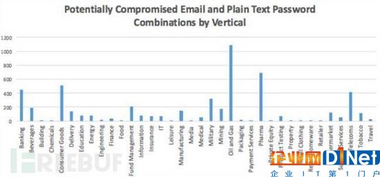 5.泄露的数据中石油天然气公司占20%,约1090条账户信息。