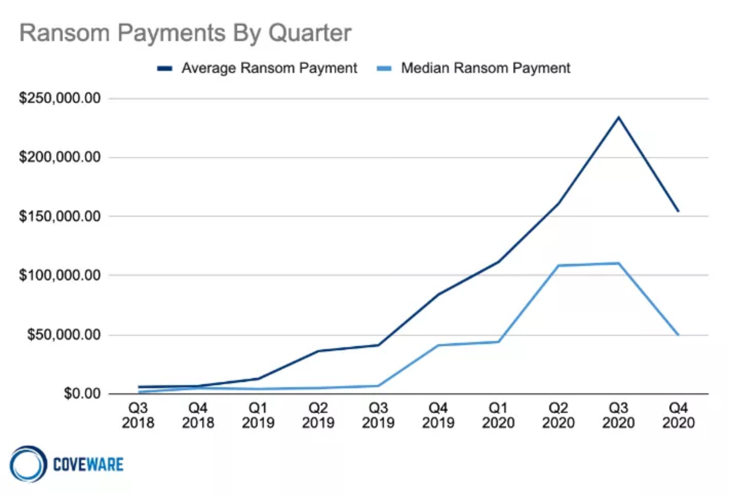 Coveware:2020年Q4勒索软件费用降至15.4108万美元 同比下降34%. 2021-02-04