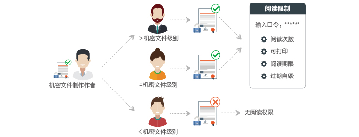 由于企业内部机密文件(比如:设计图纸等研发资料机密性要求高),通常会因实际业务需要涉及到不同部门的相关人员,或者相关领导查阅。但是又为了防止内部人员越权访问,需要对这些机密文件的访问权限进行详细控制,进一步保障数据安全。
