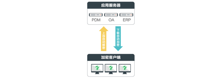 如果要求终端数据上传到企业某些应用服务器(比如:PDM、OA)的数据是明文,那么可以将这些应用服务器配置添加到白名单队列中,终端上传的数据会被自动解密成明文后保存在服务器上。如果上传到其他服务器则还是密文存储;