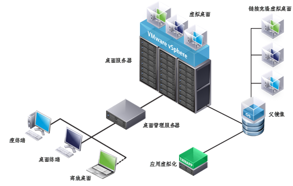 支持员工按需申请、管理员可以快速发放、无需搬运沉重的PC主机及复杂的系统应用部署,可以实现统一接入、支持随时随地访问。